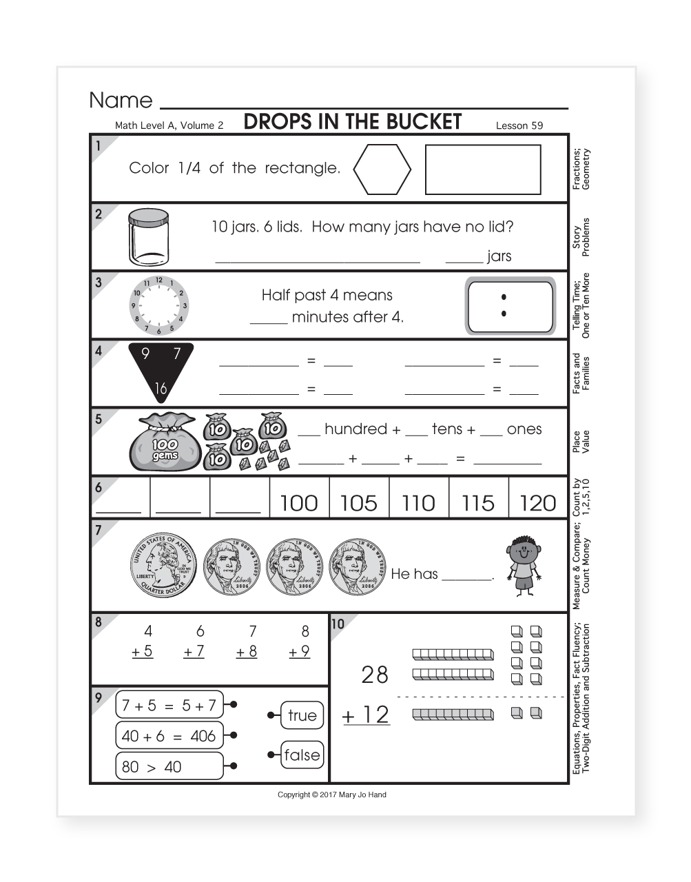 MH-2012 Math Drops in the Bucket - Book 6 (for 1st Grade, second semester)