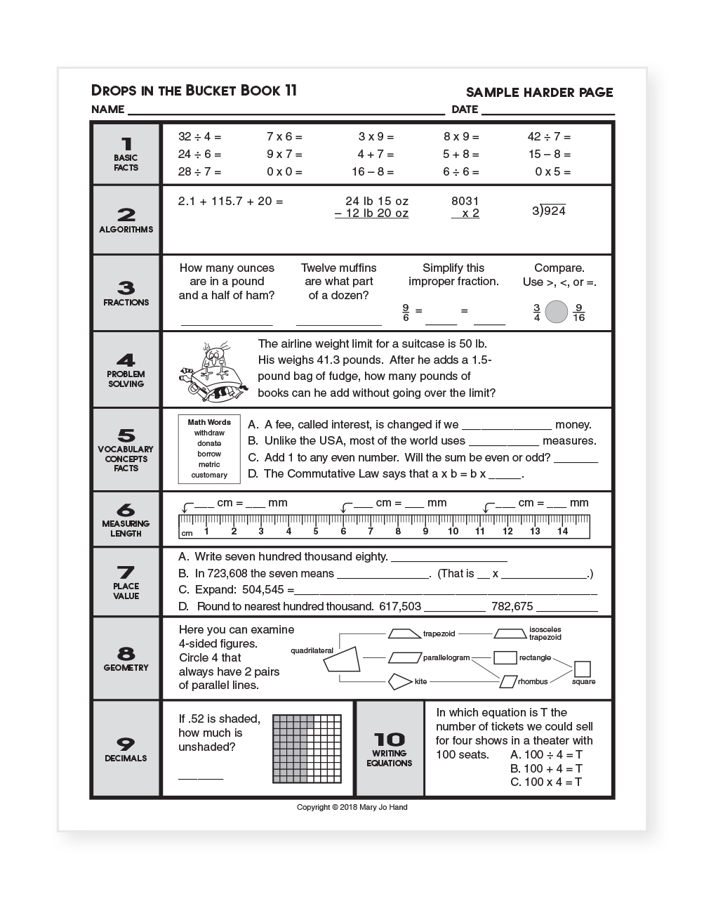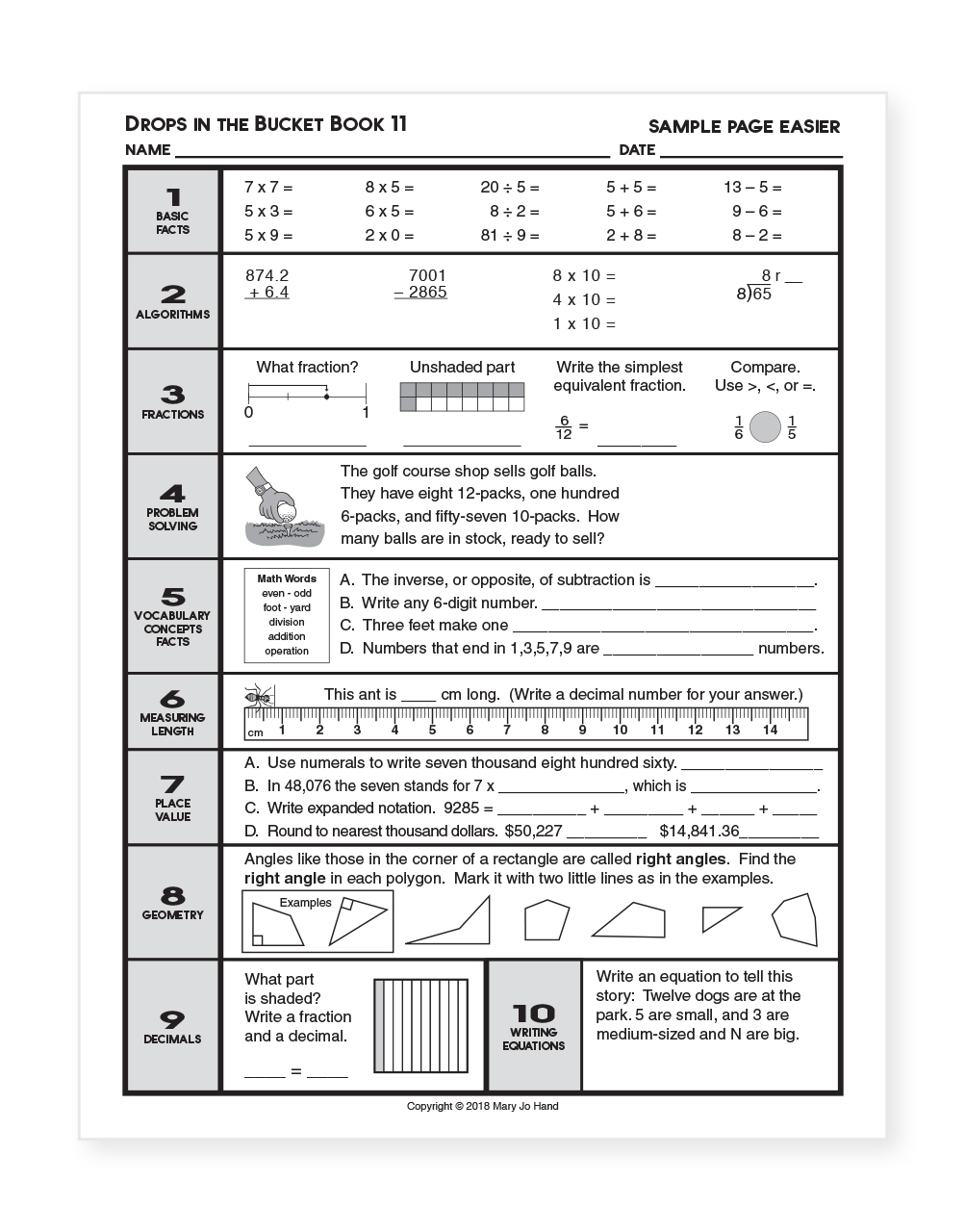 Each daily lesson of Drops in the Bucket includes a variety of tasks to engage the mind and prepare your students to successfully use math in their lives, both in and out of school.