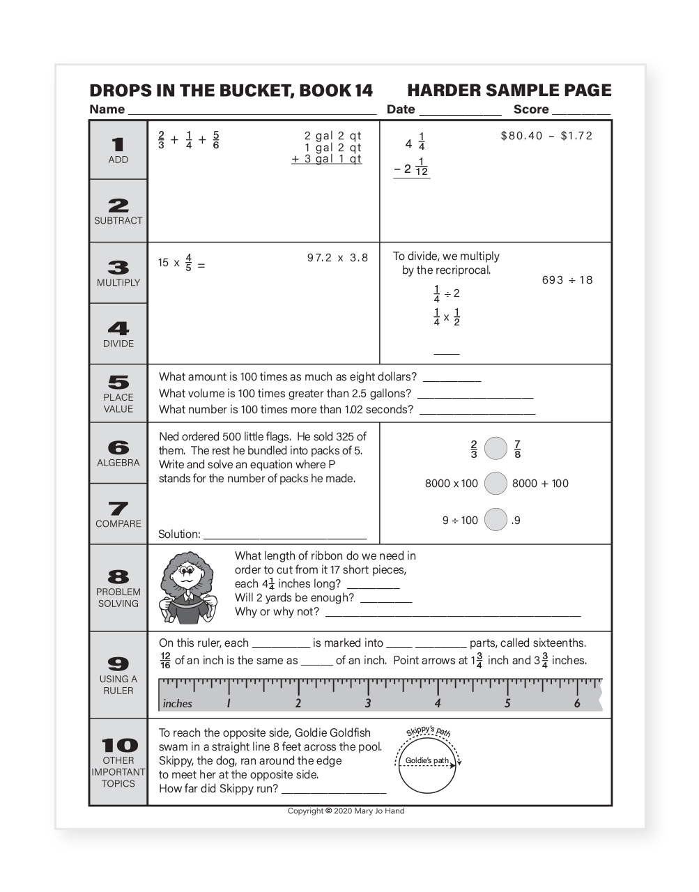 Each of the 60 daily lessons of Drops in the Bucket includes a variety of tasks to engage the mind and prepare your students to successfully use math in their lives, both in and out of school.